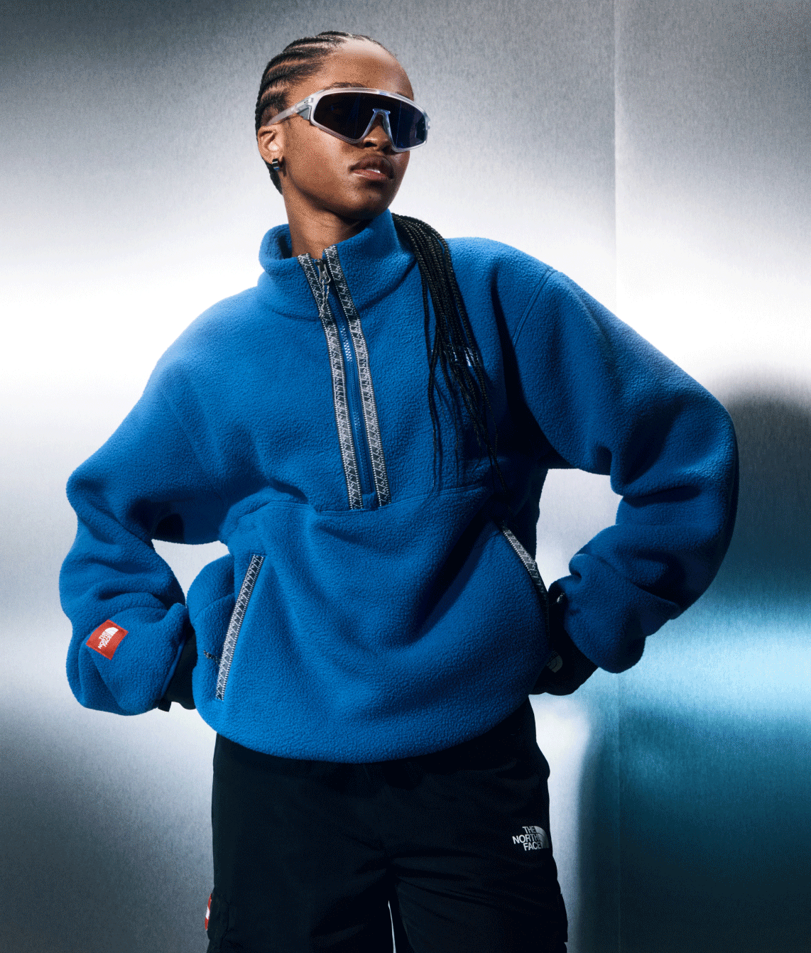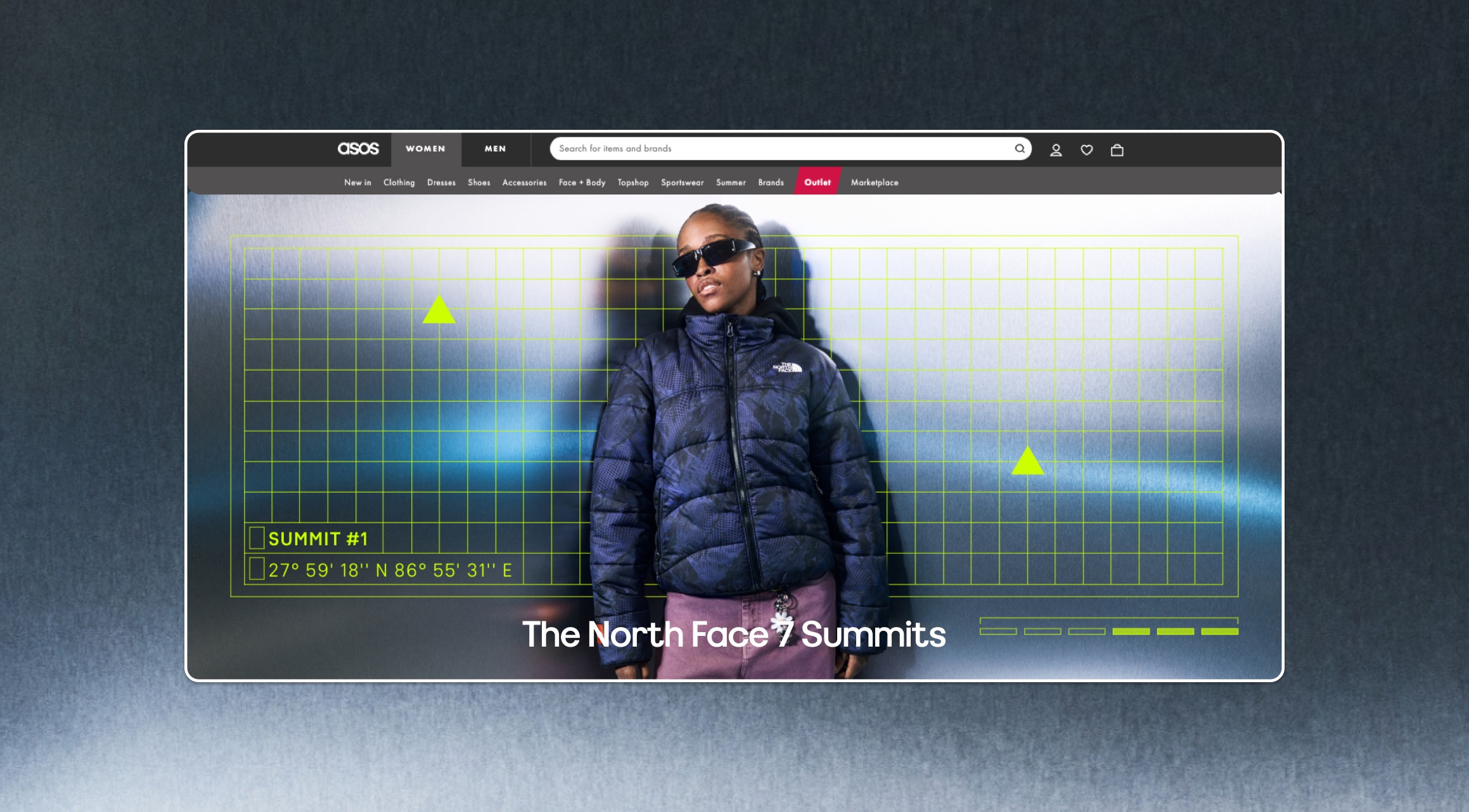 The North Face 7 Summits Collection draws inspiration from the iconic peaks of the world’s seven continents, blending adventure-ready outerwear with street-smart style. Featuring bold graphics, warm fleeces, and innovative designs, this collection brings mountain-inspired cool to your A/W wardrobe. The shoot captures the essence of exploration with a high-tech aesthetic — models are photographed against brushed metal backdrops, surrounded by printed mood boards that evoke a 90s digitech vibe. Neon yellow/green accents, graphic grid overlays, summit icons, location coordinates, and ticker tape elements add a futuristic edge, emphasizing the spirit of adventure and the thrill of the climb.
